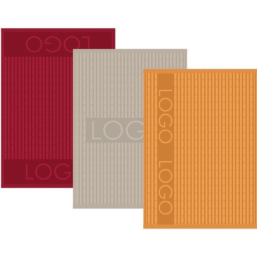 Плед с вывязанным логотипом и рельефным узором в фирменном цвете вашей компании.