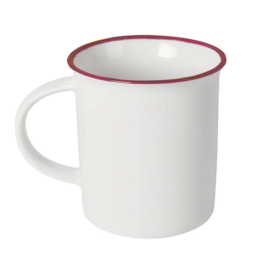 Кружка такой любимой и знакомой всем формы из нашего советского прошлого. Кружка пионерских лагерей, школьных столовых и домов отдыха. Как здорово было пить из такой компот из сухофруктов или ароматный индийский чай! Белое глянцевое покрытие дополняет цветной кант по краю кружки. Цвет канта можно выбрать из 4х различных оттенков.Цвет канта близкий к Pantone 201С