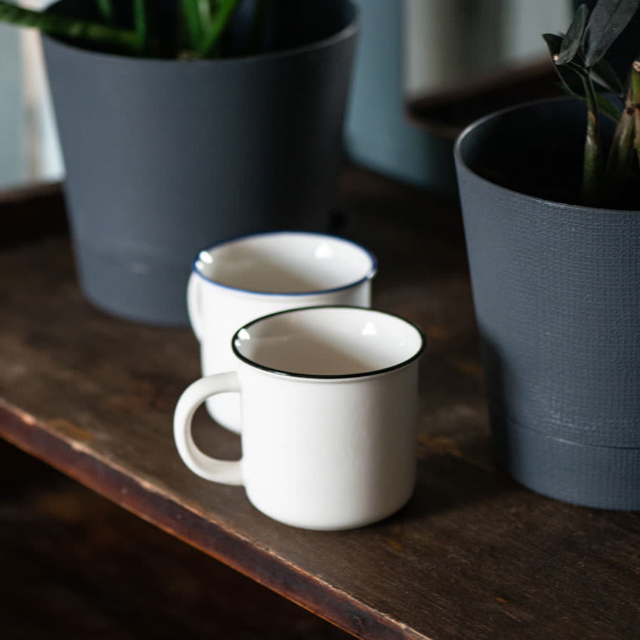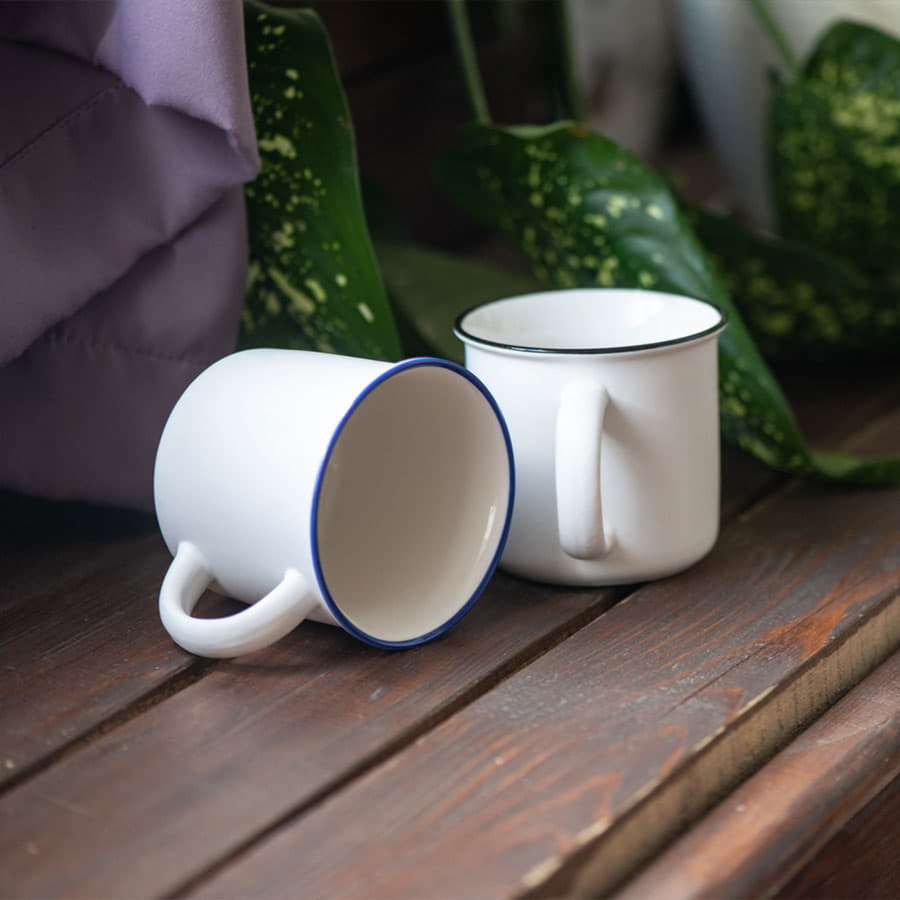 Матовое покрытие Кружка знакомой формы из советского прошлого. Благодаря глубокому матовому покрытию эта керамическая кружка выглядит дорого и респектабельно. Сегодня особенно в тренде матовый маникюр, матовая помада и даже корпуса автомобилей. А логотип на матовом покрытии будет выглядеть благородно и эффектно. Цветной кант дополняет верх кружки и делает ее еще больше похожей на "ту самую кружку из детства". Цвет канта близкий к Pantone 2756C*Внимание! Логотип mycup на донышке может быть неустойчив к истиранию после воздействия высокой температуры обжига (горячая и холодная деколь) или мытья в посудомоечной машине.