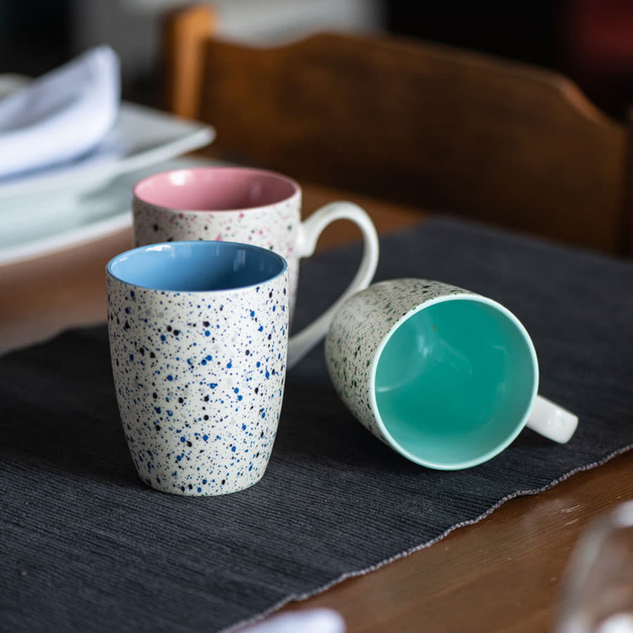 Кружка наиболее популярной формы с нежным цветом внутри и новым необычным покрытием снаружи. TERRAZZO - старинный венецианский узор с мелкими цветными вкраплениями. Изначально использовался для декорирования пола и изделий из камня. В современном интерьере этот материал стали использовать в самых неожиданных вариациях, при изготовлении посуды, мебели, кухонных фасадов, для оформления интерьера ванных комнат, в качестве светильников и других аксессуаров для дома. А проекты с использованием терраццо в интерьере заполонили Instagram и Pinterest дизайнеров и поклонников дизайна по всему миру. Цвет внутренней части близкий к Pantone 566C Внимание! Рисунок (цветные вкрапления) может просматриваться через нанесенное изображение