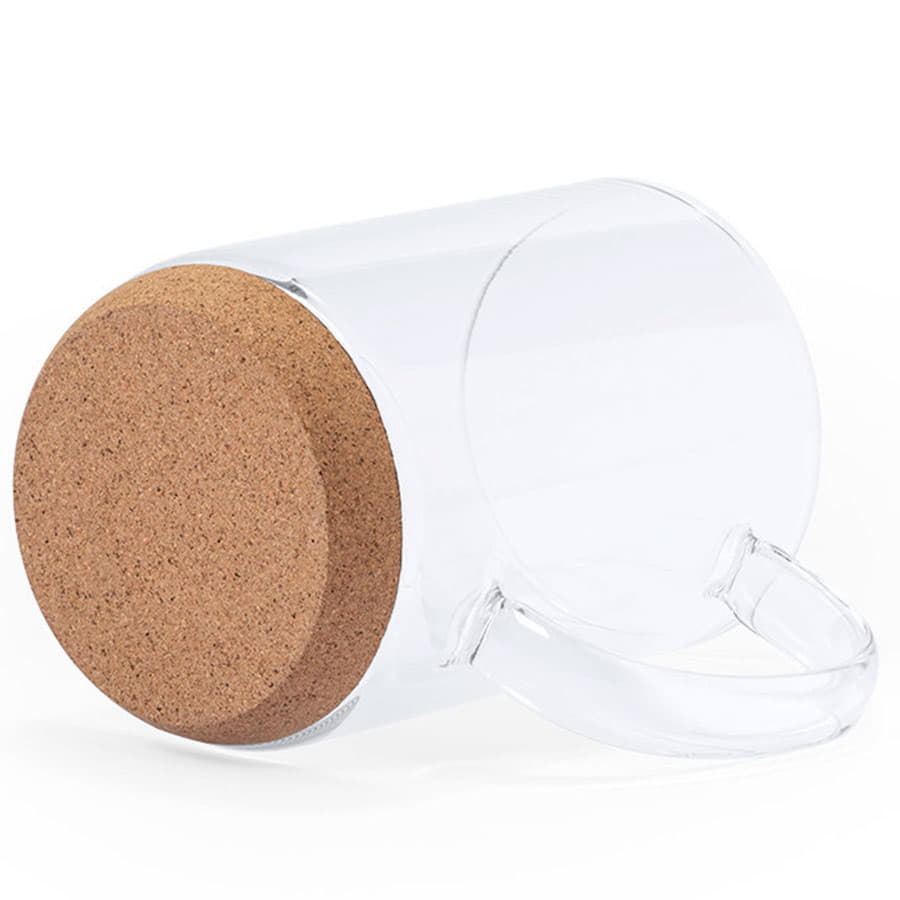 Кружка изготовлена из боросиликатного стекла, а донышко - из пробкового дерева. Боросиликатное стекло отличается особой прочностью и жаростойкостью. Впервые боросиликатное стекло появилось в 19м веке и было использовано для сигнальных фонарей. Фонари из обычного стекла быстро лопались из-за перепада температуры, в то время как эти фонари горели и в зимнюю стужу. После этого жена химика, создавшего прочное стекло, попросила попробовать его в духовке для выпечки пирога. Форма из такого стекла выдержала выпекание без нареканий. Вскоре боросиликатное стекло получило всеобщую популярность и стало широко применяться в фармацевтике, детской продукции и, конечно, при изготовлении различной посуды. Индивидуальная упаковка - коробка из крафтового картона