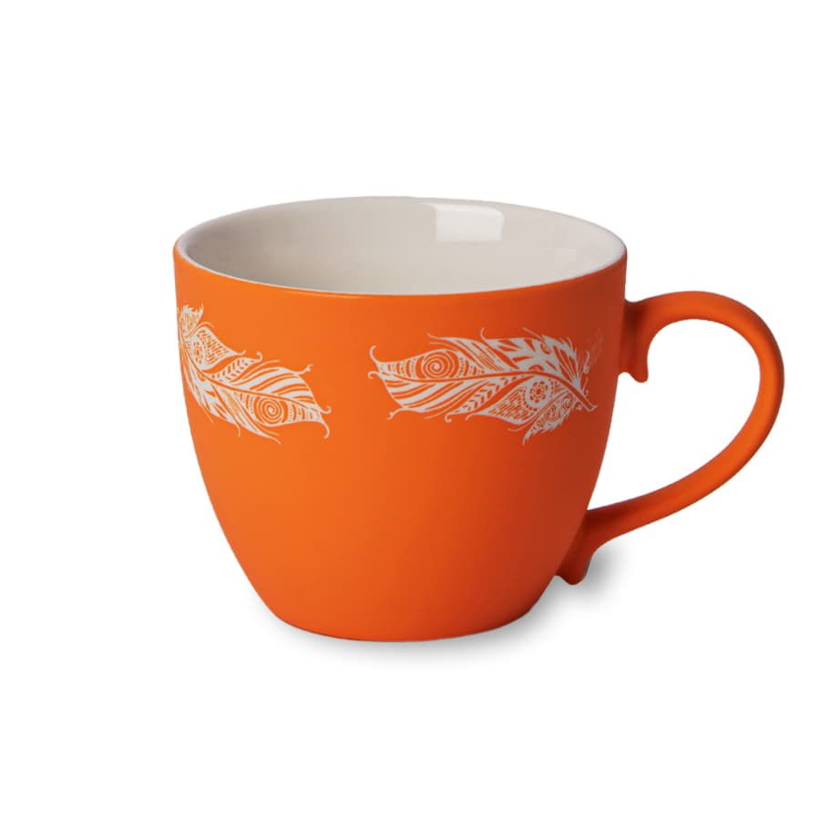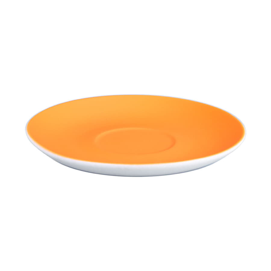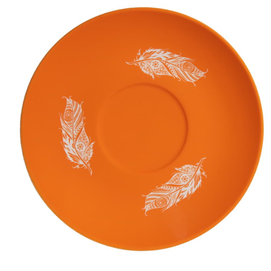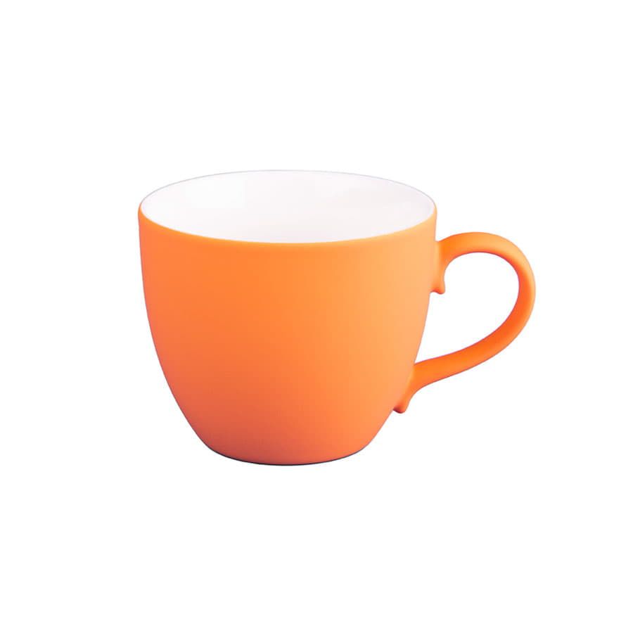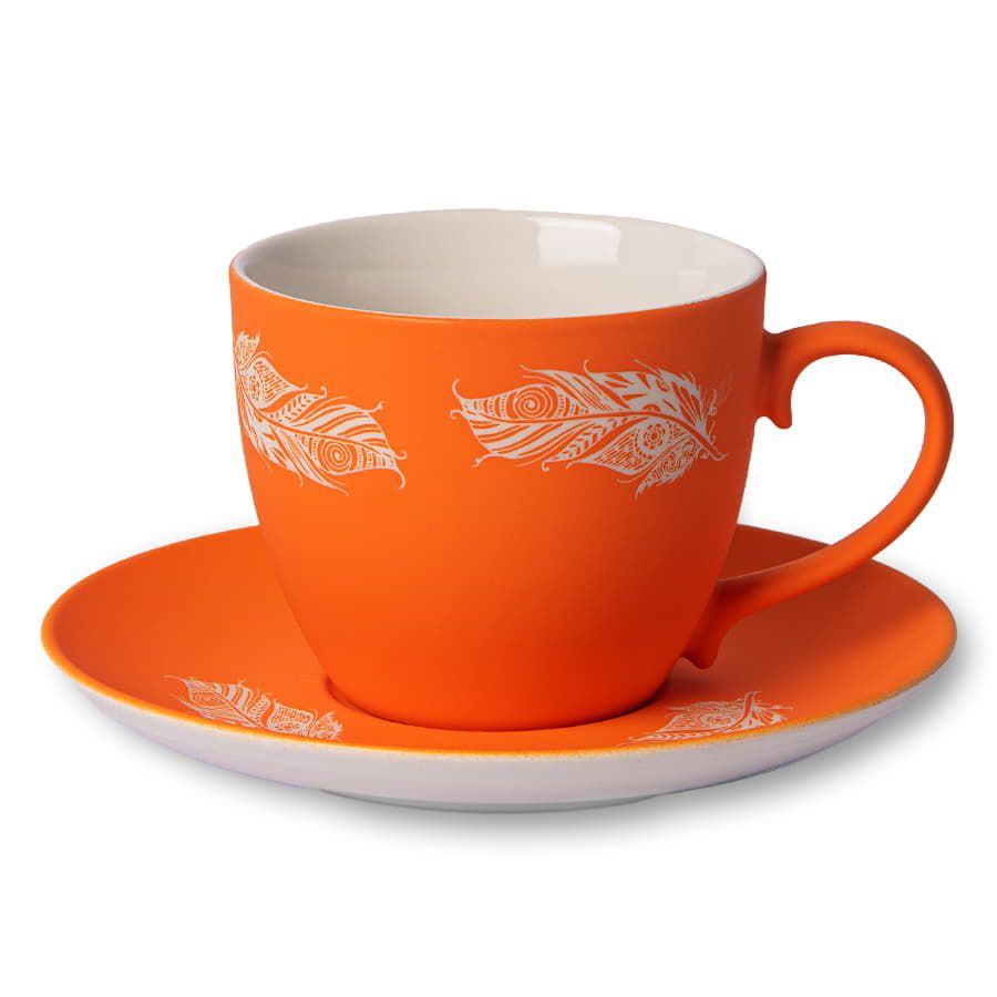 Чайная пара из фарфора с прорезиненным покрытием soft-touchЧашка классической формы и удобное глубокое блюдцеЦвет близкий к Pantone 1645CНе рекомендуется мыть в посудомоечной машине