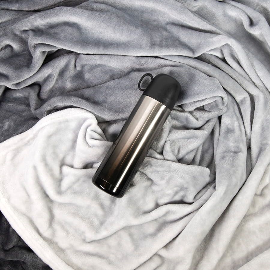 Плотность пледа 280 гр м, размер 130*150 см. Плед окрашен градиентом - плавный переход от светло-серого к темно-серому оттенку.