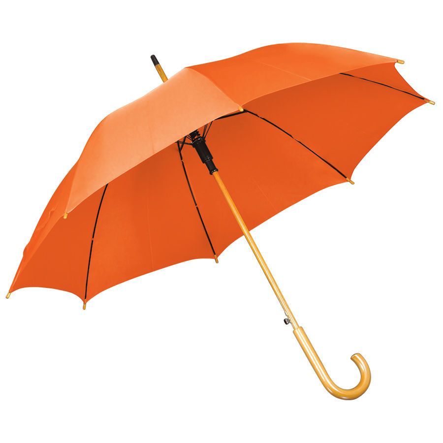 Зонт-трость с деревянной ручкой, полуавтомат. Диаметр купола: 103 см, длина стержня 90 см. Состав купола: 100% полиэстер 190T Состав спиц: металл. Ручка деревянная. Цвет купола: близкий к пантону 021C.