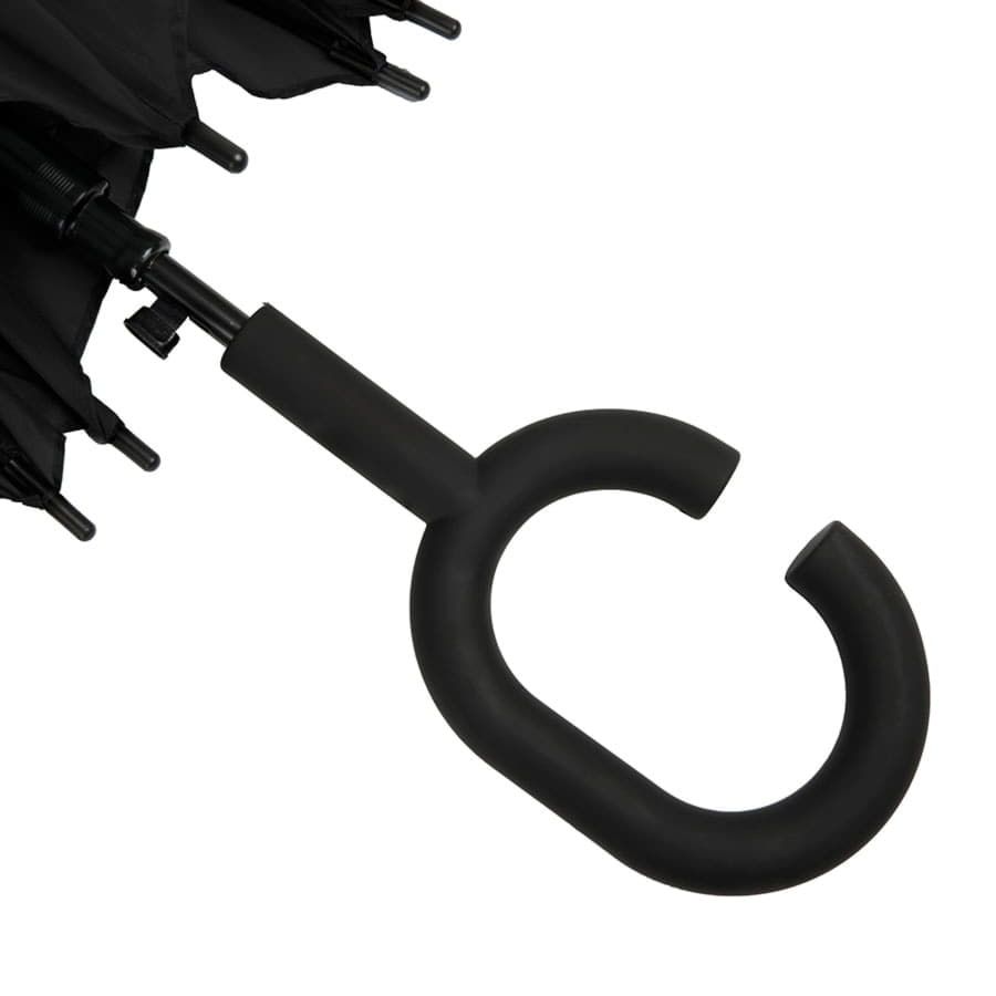 Удобная и необычная ручка с soft-touch покрытием, она позволит повесить зонт на запястье и освободить руки для более важных дел-держать стакан с кофе, ответить на звонок и т.д. Или же есть возможность повесить пакет с покупками на ручку и ваша вторая рука свободна!!Система anti-windЧёрный, стильный и современный!