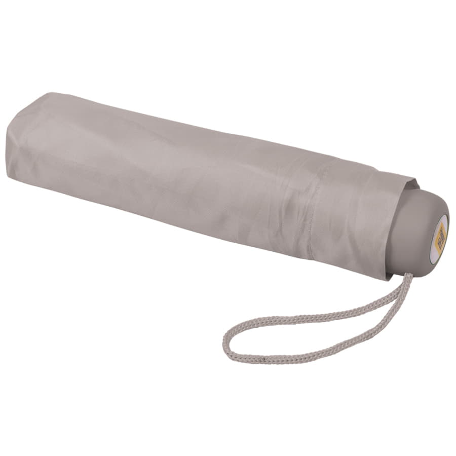Зонт в 3 сложения, механический Диаметр купола: 95см Состав купола: 100% полиэстер 190T Состав спицы и стержень: металл Пластиковая ручка с soft - touch поверхностью. Длина ручки зонта в открытом состоянии 54,5 см от основания Цвет купола близкий Pantone cool grey 6C Зонт в чехле из основного материала.
