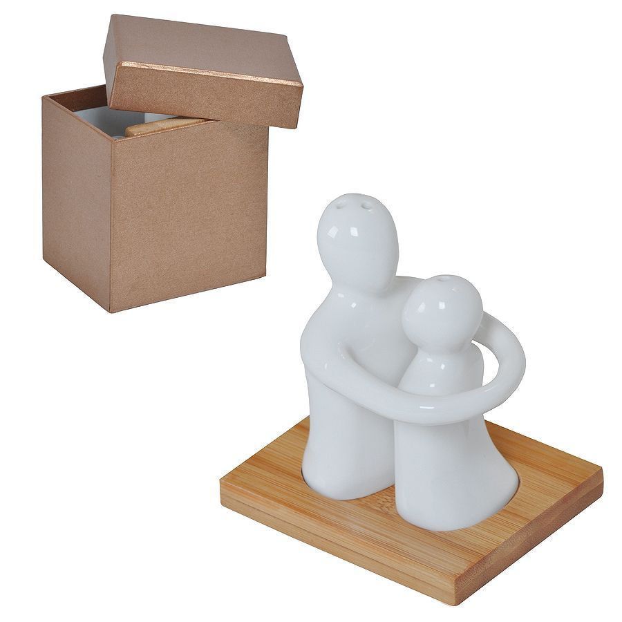 Фарфоровая пара из солонки и перечницы необычной формы символизируют любовь, единение, доверие и привязанность. Ученые говорят, что пять объятий в сутки позволяют зарядиться эндорфинами на весь день, а эндорфины, как известно, повышают иммунитет. Когда люди обнимаются, у них стабилизируется сокращение сердечной мышцы и, как следствие, нормализуется кровяное давление. Кстати, с 1986 года 21 января отмечается Международный день объятий (International Hug Day). Это ли не повод преподнести актуальный и значимый подарок? Такой дуэт будет эффектно и оригинально смотреться как на домашней кухне, так и в офисе, на деловом завтраке или бизнес-ланче с партнерами, за столом переговоров или корпоративе. Подставка выполнена из бамбука – экологического материала, который отлично подходит для кухонных принадлежностей. В нем сделаны специальные выемки, чтобы эта изящная пара никогда не рассталась, а их совместный танец продолжался вечно. Набор поставляется в подарочной коробке.
