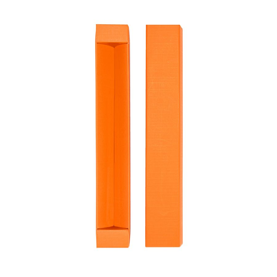 Футляр из дизайнерского картона с тиснением и ламинацией. Подходит для ручек и карандашей длиной до 145 мм и диаметром до 12 мм. Цвет, близкий к Pantone 1585C и 1645С.