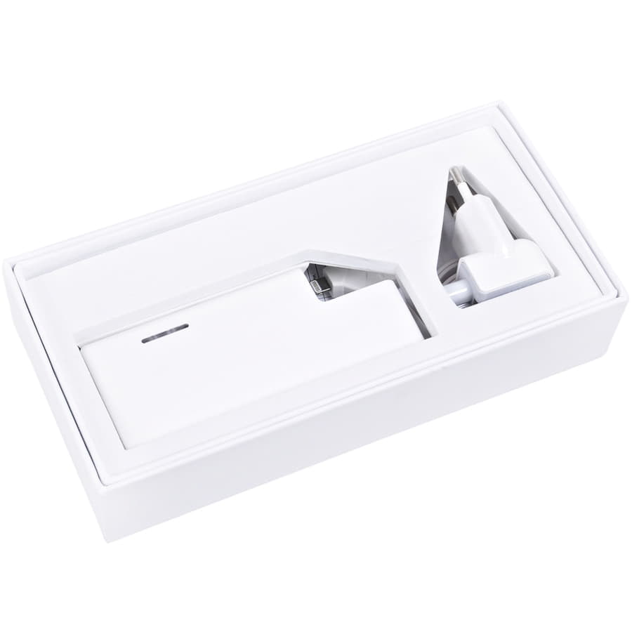 Аккумулятор Li-ion, 6000 mAh Входные параметры: 220В , 1500 mA. Выходные параметры: 5 В, 1000 mA Индикация уровня зарядки В комплект входит: 1.зарядное устройство 2.подарочная коробка с ложементом. 3.кабель с разъемами для зарядки iPhone 4 4S, 5 5S 5C,6, Micro USB. Примечание: При силе тока 1А (от компьютера) время зарядки аккумулятора 6000mAh – 10часов При силе тока 6-16А (от розетки 220в) время зарядки аккумулятора 6000mAh - 5часов