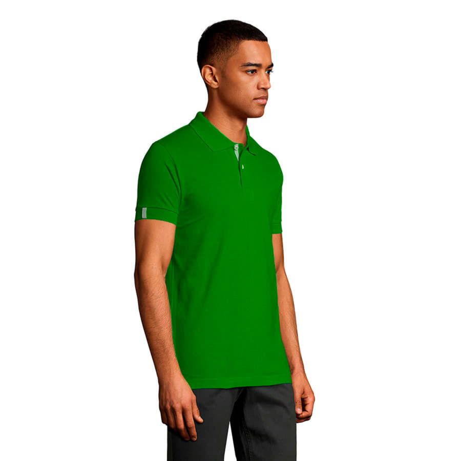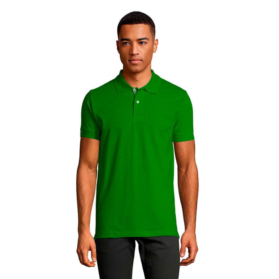 Мужская рубашка поло с коротким рукавом из трикотажного пике плотностью 200 г м2.100% хлопок Ringspun.Воротник и манжеты из резинки-рибаны 1x1.Усиливающая декоративная контрастная тесьма серого цвета в плечевом шве, на планке и рукавах.Планка с 2-мя перламутровыми пуговицами.Запасная пуговица на ярлыке в бококом шве. Боковые разрезы усилены контрастной тесьмой.Приталенный силуэт.Цвет, близкий к Pantone 363 C