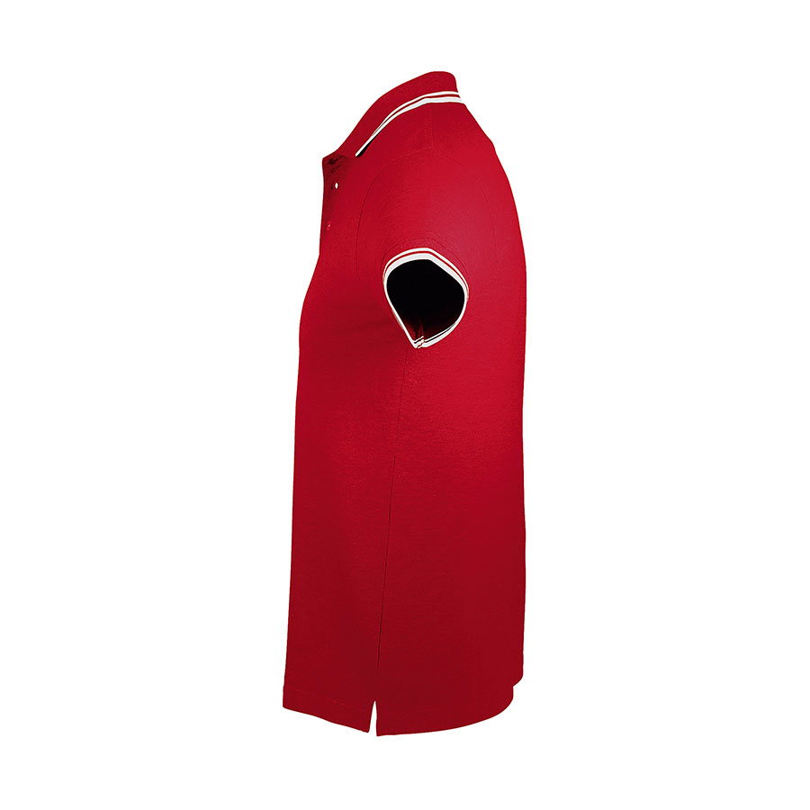 Цвет, близкий к Pantone 193 C.Слегка приталенная модель с боковыми разрезами. Воротник и манжеты отделаны рибом 1х1 и украшены контрастными полосами. Укрепляющая тесьма по вороту. Планка с пуговицами тон в тон. На боковом внутреннем шве - запасная пуговица.