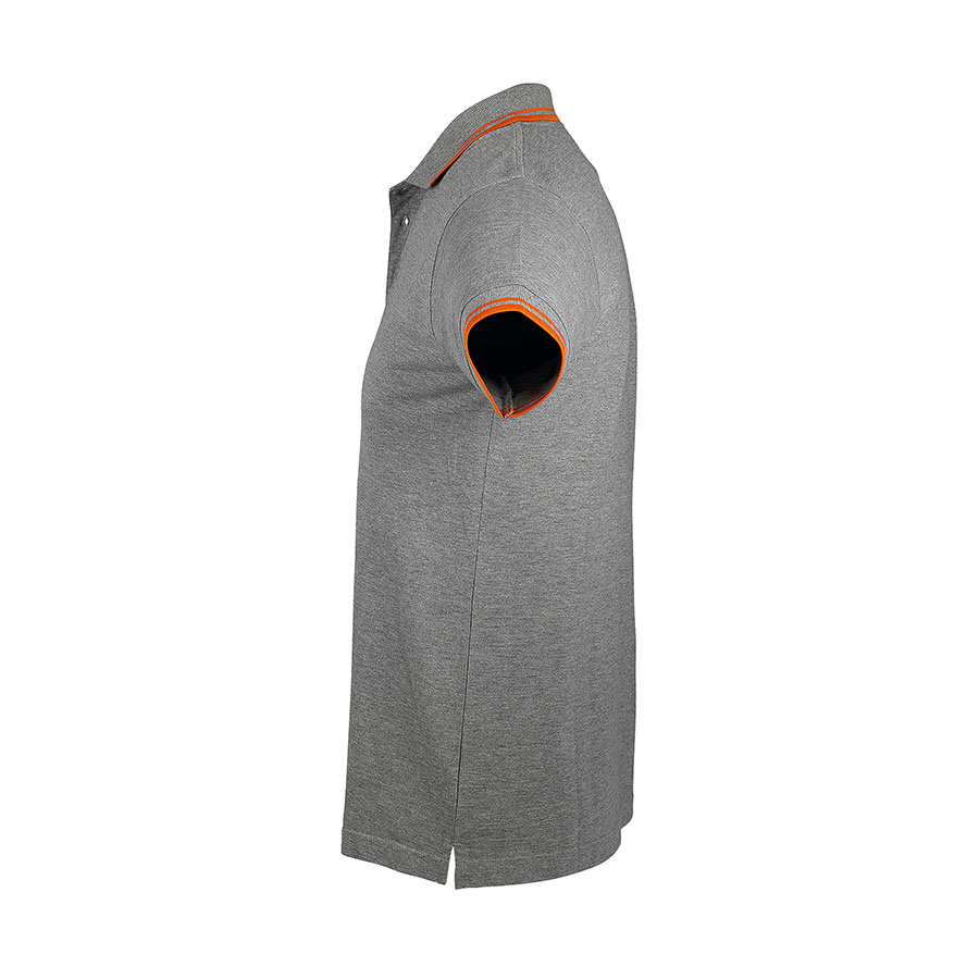 Слегка приталенная модель с боковыми разрезами. Воротник и манжеты отделаны рибом 1х1 и украшены контрастными полосами. Укрепляющая тесьма по вороту. Планка с пуговицами тон в тон. На боковом внутреннем шве - запасная пуговица. Цвет основной ткани, близкий к Pantone Cool Gray 8 CЦвет отделки, близкий к Pantone 1505 C