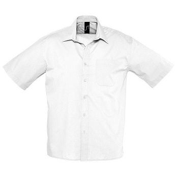 Мужская рубашка из смесового поплина с коротким рукавом. Смесовый поплин обеспечивает максимальный комфорт, лёгок в уход, не мнется. Прямой силуэт. Короткий рукав. Жесткий воротник. Планка с 7-ю пуговицами в цвет изделия. Удобный нагрудный карман слева.