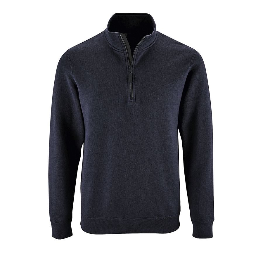 Мужской свитшот с начесом и воротником-стойкой на молнии. Манжеты и низ изделия обработаны резинкой. Внутренняя планка контрастного цвета. Лейбл с размером находится во шве горловины, лейбл производителя вшит в боковом шве изнутри. Цвет, близкий к Pantone 296 C