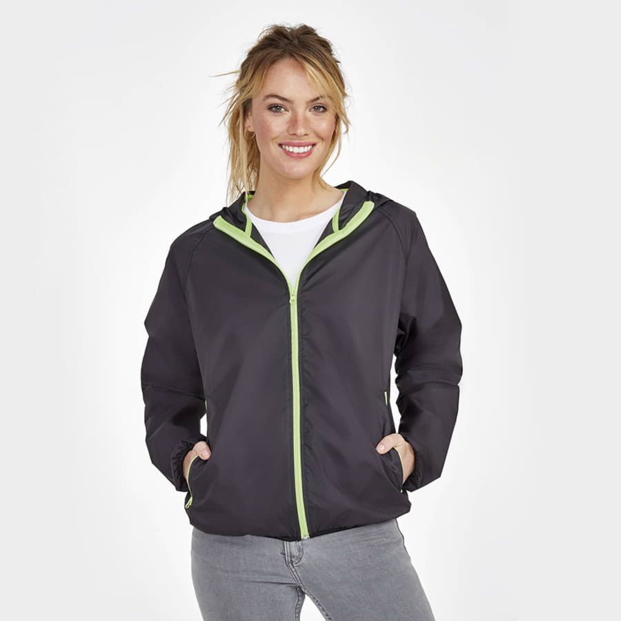 Легкая и компактная ветровка унисекс SHORE из водоотталкивающего и ветрозащитного материала. Два боковых кармана на молнии. Рукава реглан. Манжеты, капюшон и низ ветровки на эластичной тесьме. Молнии ветровки контрастного цвета. Складывается ветровка в свой карман на молнии. Цвет близкий к PANTONE 296C