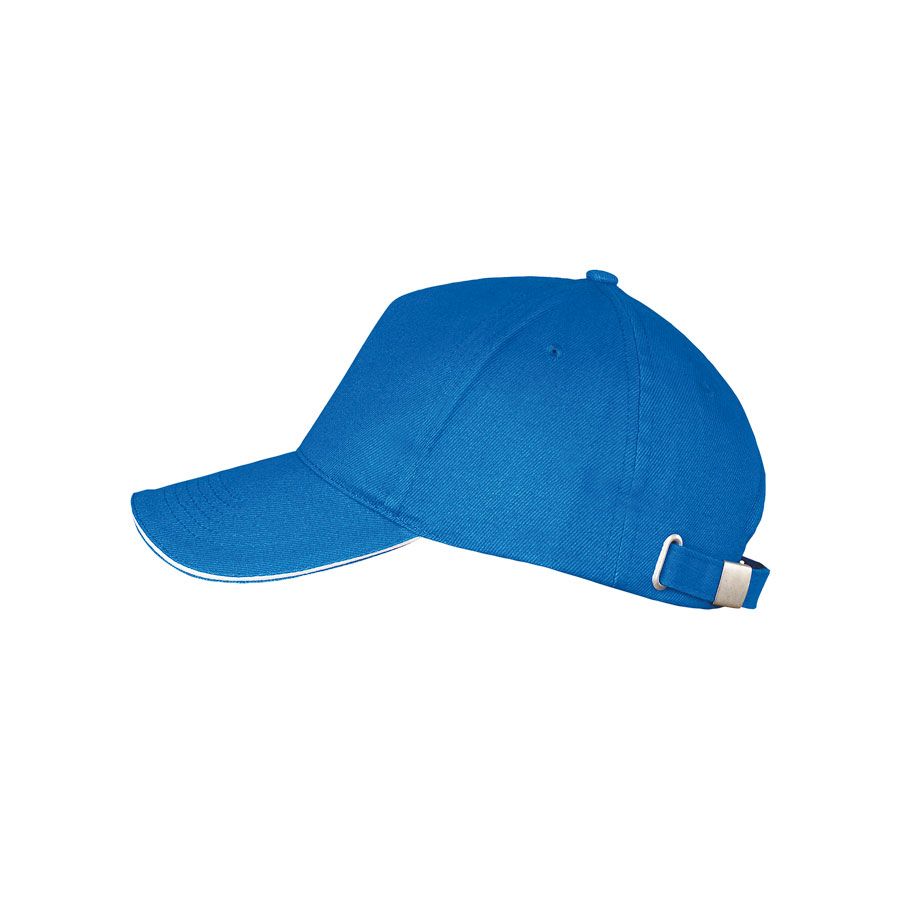 Бейсболка LONG BEACH без лобового шва с жестким козырьком "сэндвич". 4 вышитых люверса, регулируемая металлическая застежка. Цвет (синий), близкий к PANTONE 293C 7686C58 см - минимальный размер, с помощью застёжки его можно увеличить до необходимого.