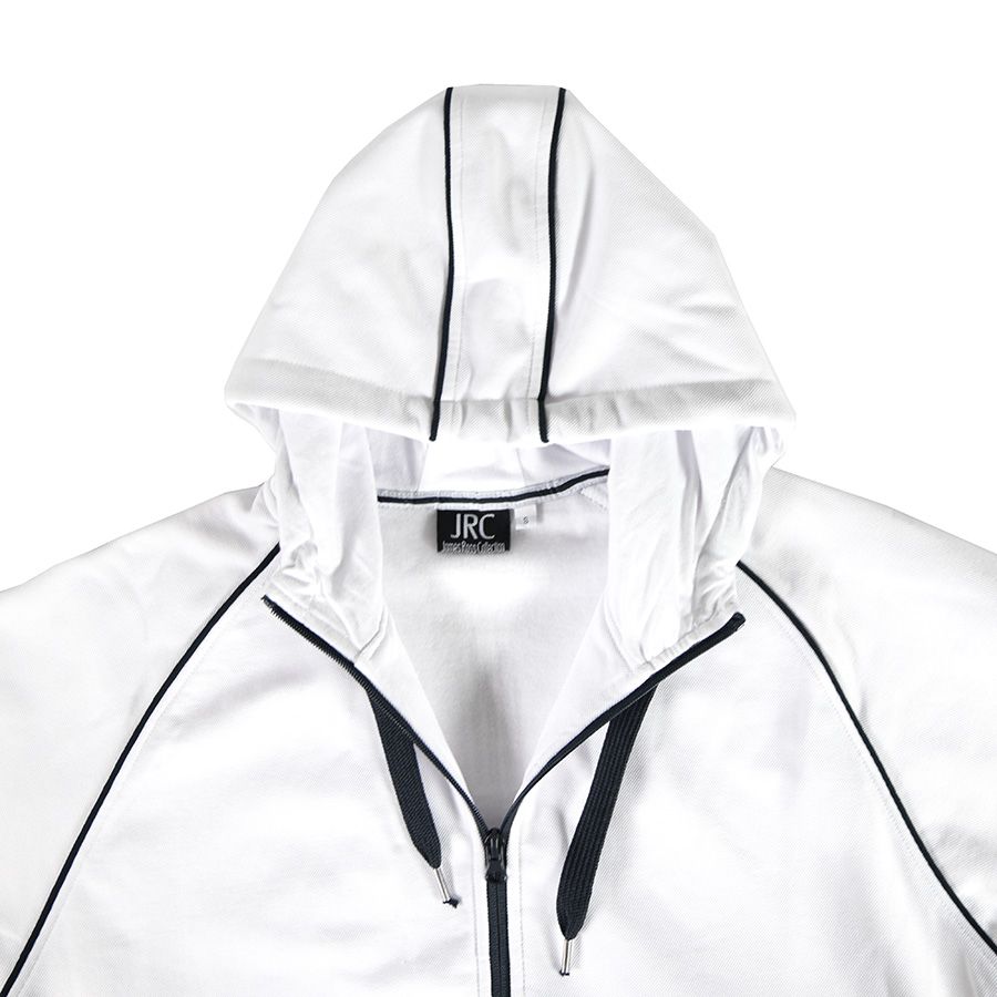Толстовка из полотна "пике" с водоотталкивающей пропиткой. Обратные контрастные молнии для предотвращения попадания влаги внутрь. Рукава-реглан. Декоративная тесьма по горловине спинки. Капюшон на подкладке с небольшой стойкой. Контрастные канты и шнур в капюшоне. Два передних кармана на молнии. Манжеты и низ изделия обработаны плотным рибом 1*1 . Представленные размеры могут отличаться от общепринятых. Рекомендуем взять образец для проверки посадки изделия на фигуре