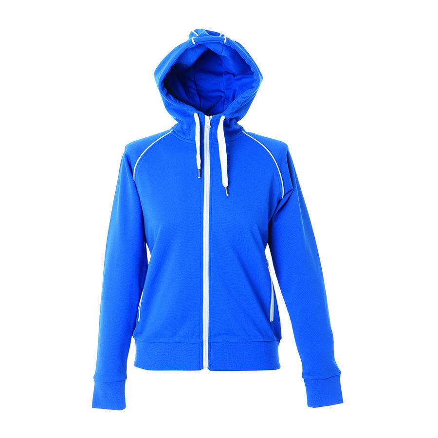Основная ткань: цвет, близкий к Pantone 2935 U Толстовка из полотна "пике" с водоотталкивающей пропиткой. Обратные контрастные молнии для предотвращения попадания влаги внутрь. Рукава-реглан. Декоративная тесьма по горловине спинки. Капюшон на подкладке с небольшой стойкой. Контрастные канты и шнур в капюшоне. Два передних кармана на молнии. Манжеты и низ изделия обработаны плотным рибом 1*1 . Представленные размеры могут отличаться от общепринятых. Рекомендуем взять образец для проверки посадки изделия на фигуре
