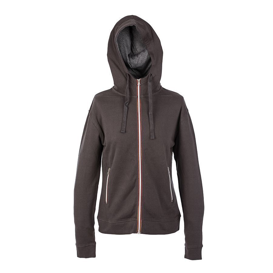 Комфортная женская толстовка худи на молнии LAS VEGAS LADY Худи с приталенным силуэтом из футера с начёсом, плотностью 280 г м² и смесовым составом: 65% полиэстера и 35% хлопка. С таким составом изделия не деформируются и служат долго. Капюшон с подкладом и удобным высоким воротником-стойкой. Шов горловины усилен мягкой лентой Низ толстовки и рукава из эластичной рибаны. Основная молния и молнии в боковых карманах - контрастные. Материал: футер с начёсом, 65% полиэстера и 35% хлопка, 280 г м².