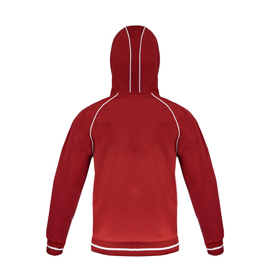 Основная ткань: цвет, близкий к Pantone 201 C Толстовка из полотна "пике" с водоотталкивающей пропиткой. Обратные контрастные молнии для предотвращения попадания влаги внутрь. Рукава-реглан. Декоративная тесьма по горловине спинки. Капюшон на подкладке с небольшой стойкой. Контрастные канты и шнур в капюшоне. Два передних кармана на молнии. Манжеты и низ изделия обработаны плотным рибом 1*1 .