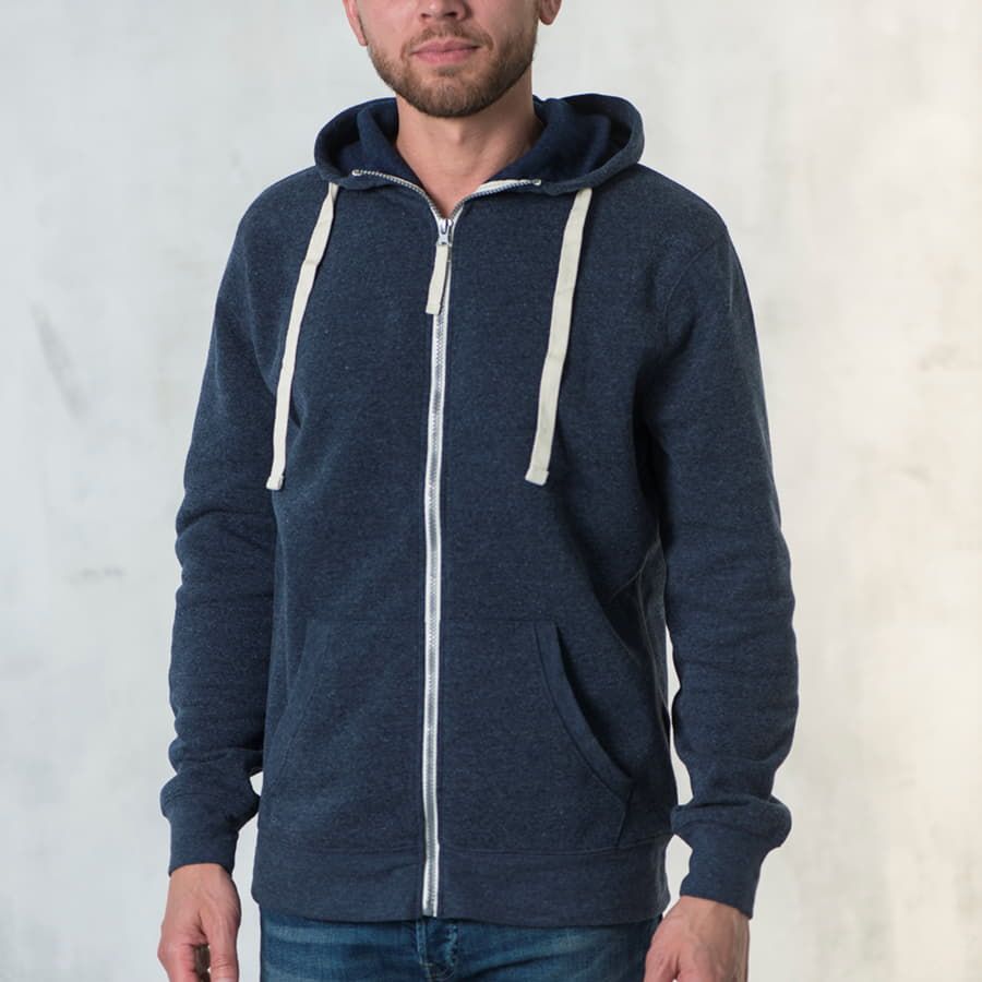 Основная ткань: цвет, близкий к Pantone 5395 U Толстовка с эффектом "меланж". Облегченная пластиковая молния с контрастной тканевой лентой. Капюшон с небольшой стойкой и плоским вытяжным шнуром. Манжеты и низ изделия обработаны рибом 1*1.