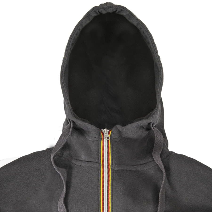 Комфортная толстовка худи на молнии LAS VEGAS MAN из футера с начёсом, плотностью 280 г м² и смесовым составом: 65% полиэстера и 35% хлопка. С таким составом изделия не деформируются и служат долго. Капюшон с подкладом и удобным высоким воротником-стойкой. Шов горловины усилен мягкой лентой Низ толстовки и рукава из эластичной рибаны. Основная молния и молнии в боковых карманах - контрастные. Материал: футер с начёсом, 65% полиэстера и 25% хлопка, 280 г м².