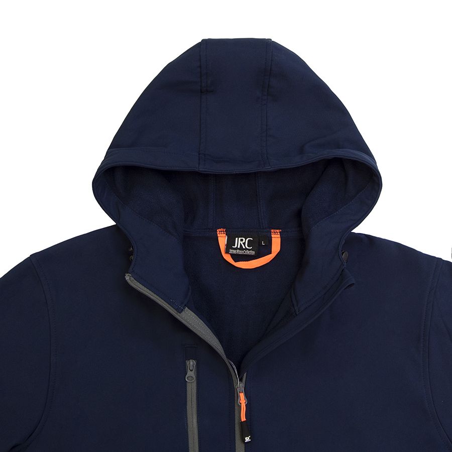 Ткань softshell. Водонепроницаемая и дышащая двухслойная куртка. Обратная облегченная пластиковая молния со съемным пуллером. Один нагрудный и два боковых кармана на молнии. Утягивающий шнурок по низу куртки. Регулируемые манжеты на липучке.