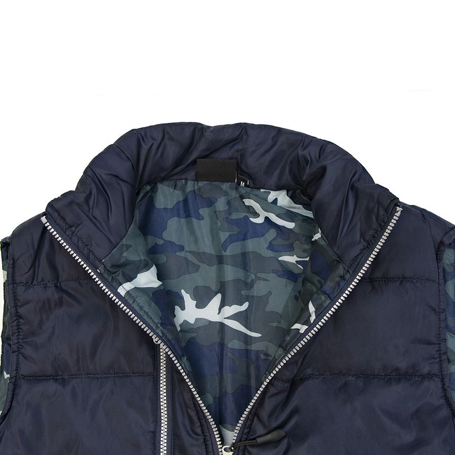 Основная ткань: цвет, близкий к Pantone 5395 U, подкладка: цвет, близкий к 567 U, 533 С, 7541 С Небольшой воротник-стойка. Контрастная облегченная пластиковая молния со съемным пуллером. Три передних кармана на молнии. Внутренний карман на липучке. Контрастная подкладка камуфляж.