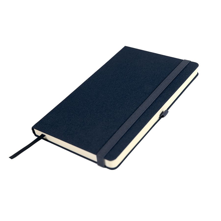 100% эко-блокнот Размер: 130х210 мм Переплет: твердый Обложка: RPET рециклированный полиэстер, полученный из переработанных пластиковых бутылок Материал сертифицирован в Нидерландах по Global Ecological Standard Отделка: жаккардовая резинка 12 мм и пенхолдер в тон обложки Форзац нахзац: кремовый Блок: недатированный Разлиновка: в линейку Количество страниц: 256 Углы блока: скругленные Цвет бумаги: кремовый Плотность бумаги: 70г м2 Ляссе: в тон обложке Карман для визиток: есть Упаковка: фирменный сливбокс thINKme