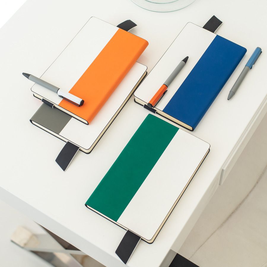 Размер: 130х210 мм Переплет: мягкий Обложка: термоактивный PU Silk Plus Цвет обложки: белый и близкий к pantone 200C, с контрастным черным кантом по краю обложки Форзац нахзац: кремовый Блок: недатированный Разлиновка: в линейку Количество страниц: 256 Углы блока: скругленные Цвет бумаги: кремовый Плотность бумаги: 70г м2 Ляссе: PU черного цвета с контрастным белым кантом Карман для визиток: есть Упаковка: фирменный сливбокс thINKme