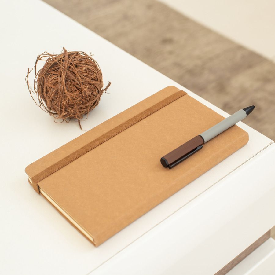 Размер: 130х210 мм Переплет: твердый Обложка: рециклированная бумага марки Naturals Neenah США Отделка: жаккардовая резинка 12 мм и пенхолдер в тон обложки Форзац нахзац: кремовый Блок: недатированный Разлиновка: в линейку Количество страниц: 256, из них: 208 стр FSC кремовая бумага, 48 стр рециклированная коричневая бумага Углы блока: скругленные Цвет бумаги: кремовый Плотность бумаги: 70г м2 Ляссе: в тон обложке Карман для визиток: есть Упаковка: фирменный сливбокс thINKme
