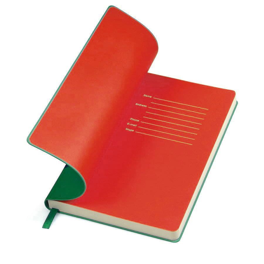 Блокнот с мягкой термоактивной обложкой и популярной комбинацией цветов Термоактивный PU материал Velvet Цвет обложки, близкий к Pantone 3435C Цвет форзаца, близкий к Pantone Red 2035U Внутренний блок 256 страниц в линейку Идеально скругленные углы блока Перфорированные 8 последних листов Кремовая FSC бумага 70 г м2 Ляссе в тон обложки Индивидуальная упаковка: фирменный сливбокс thINKme
