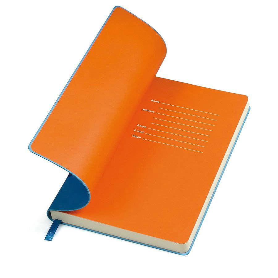 Блокнот с мягкой термоактивной обложкой и популярной комбинацией цветов Термоактивный PU материал Velvet Цвет обложки, близкий к Pantone 2386C Цвет форзаца, близкий к Pantone Orange 021U Внутренний блок 256 страниц в линейку Идеально скругленные углы блока Перфорированные 8 последних листов Кремовая FSC бумага 70 г м2 Ляссе в тон обложки Индивидуальная упаковка: фирменный сливбокс thINKme