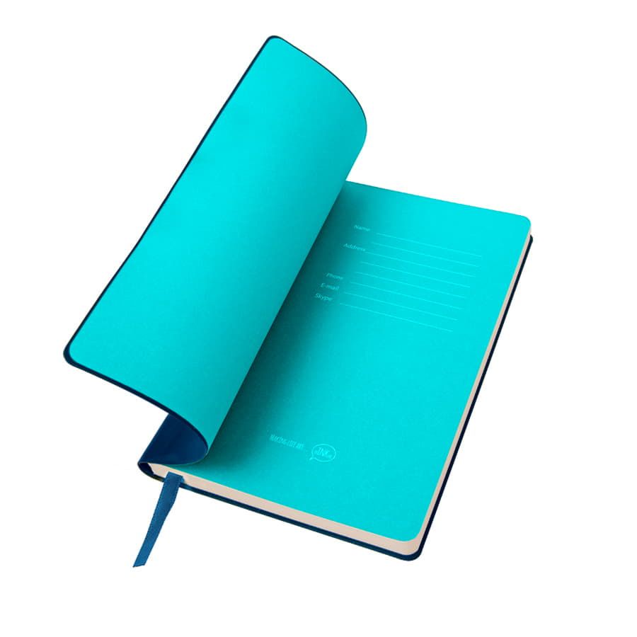 Блокнот с мягкой термоактивной обложкой и популярной комбинацией цветов Термоактивный PU материал Velvet Цвет обложки, близкий к Pantone 534C Цвет форзаца, близкий к Pantone Blue 298U Внутренний блок 256 страниц в линейку Идеально скругленные углы блока Перфорированные 8 последних листов Кремовая FSC бумага 70 г м2 Ляссе в тон обложки Индивидуальная упаковка: фирменный сливбокс thINKme