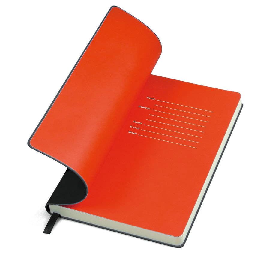 Блокнот с мягкой термоактивной обложкой и популярной комбинацией цветов Термоактивный PU материал Velvet Цвет обложки, близкий к Pantone Black C Цвет форзаца, близкий к Pantone Red 2035U Внутренний блок 256 страниц в линейку Идеально скругленные углы блока Перфорированные 8 последних листов Кремовая FSC бумага 70 г м2 Ляссе в тон обложки Индивидуальная упаковка: фирменный сливбокс thINKme