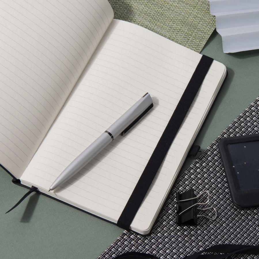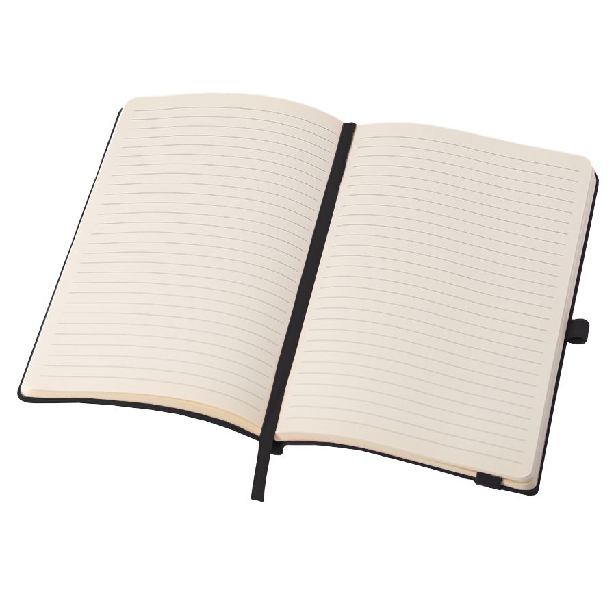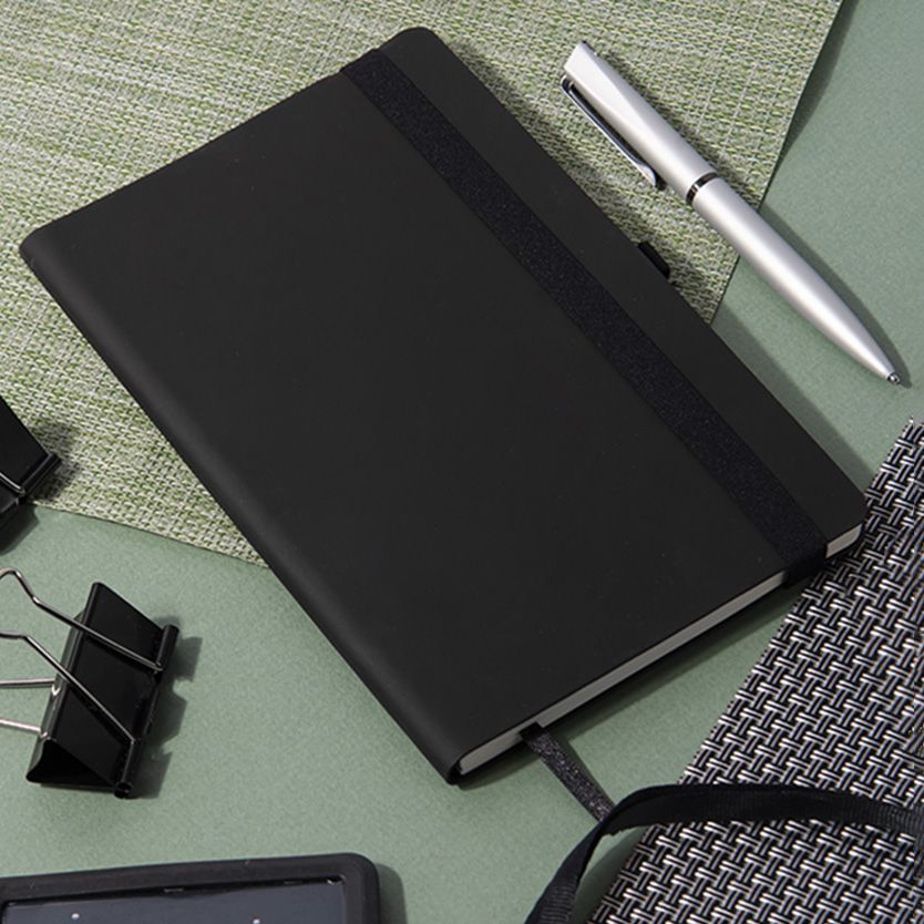 Soft-touch блокнот с покрытием, защищающим от царапин FSC сертификат Мягкая термоактивная обложка PU нового поколения Silk Plus Пантон, близкий к BlackC Кремовая бумага (блок 70 гр, форзац 160 гр) Блок 192 стр. в линейку Перфорация 8 последних листов. Ляссе в тон обложке. Практичные закругленные углы. Надежный прошитый переплет. Упаковка: фирменный слив-бокс