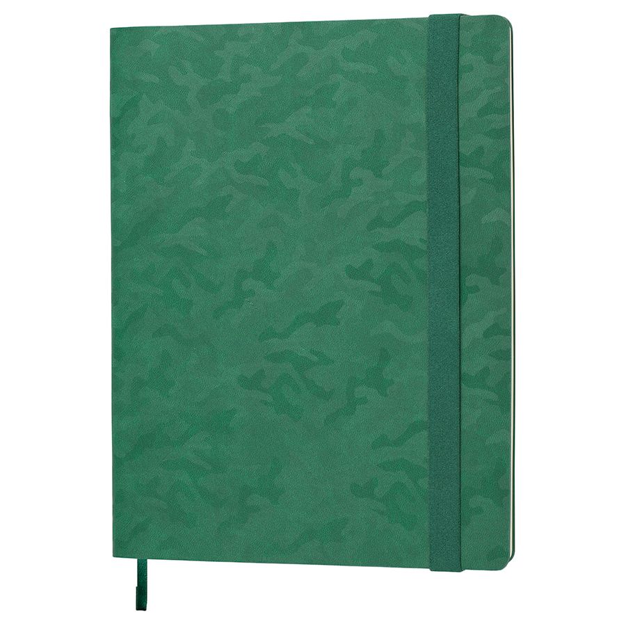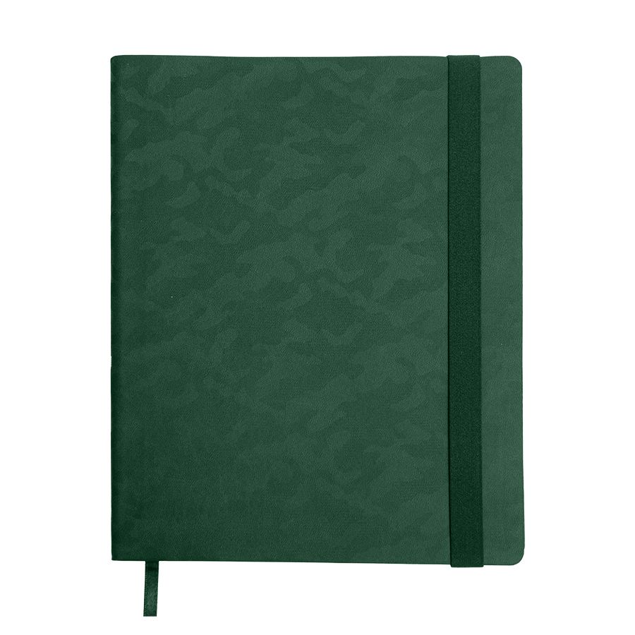 Эксклюзивный ультрамодный блокнот ipad-size с паттерном камуфляж FSC сертификат Гибкая термоактивная обложка PU Camou эксклюзивно для thINKme Эластичная soft-touch резинка 15 мм в тон обложке Конверт для записок Пантон, близкий к 3435C Кремовая бумага (блок 70 гр, форзац 160 гр) Блок 256 стр. в клетку Перфорация 8 последних листов Ляссе в тон обложки Практичные закругленные углы Надежный прошитый переплет Упаковка: фирменный слив-бокс