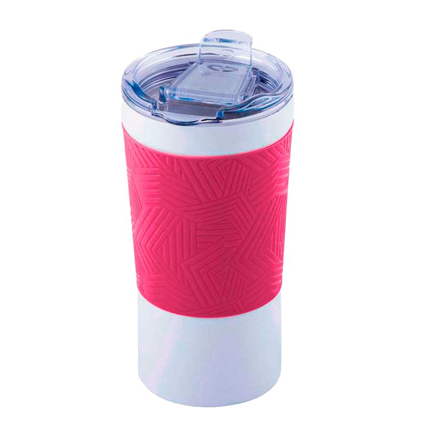 Вакуумная термокружка с покрытием "ice flower" и силиконовой манжетой.Закручивающаяся крышка выполнена из высококачественного прозрачного пластика - тритан.Сохраняет температуру горячих напитков до 6 часов, холодных напитков - до 8 часов.Подходит для автомобильных подстаканников. Цвет близкий к pantone 676C.