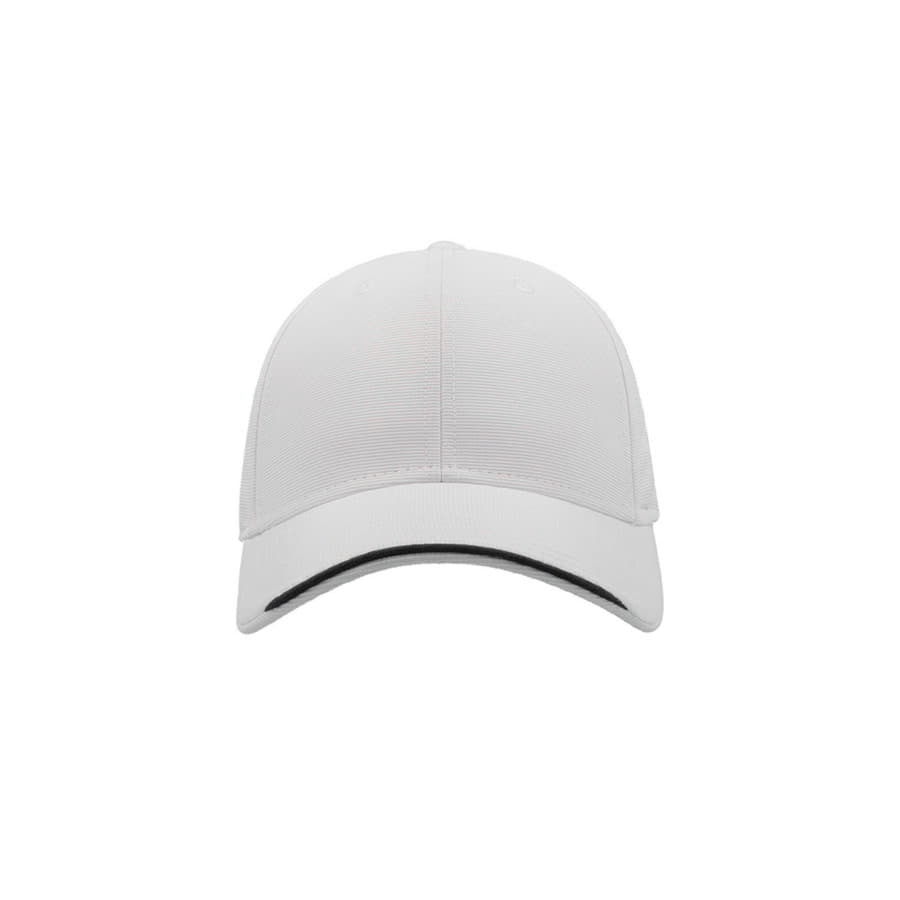 Плотная жаккардовая бейсболка ESTORIL с декоративным кантом по центру козырька. - 6 клиньев,- лобовой шов,- 6 вышитых люверсов для лучшей вентиляции,- изогнутый козырек с полной прострочкой,- контрастный кант в центральной части козырька.- застежка на липучке.Цвет близкий к Pantone White58,5 см - средний размер, с помощью застёжки его можно увеличить или уменьшить до необходимого.