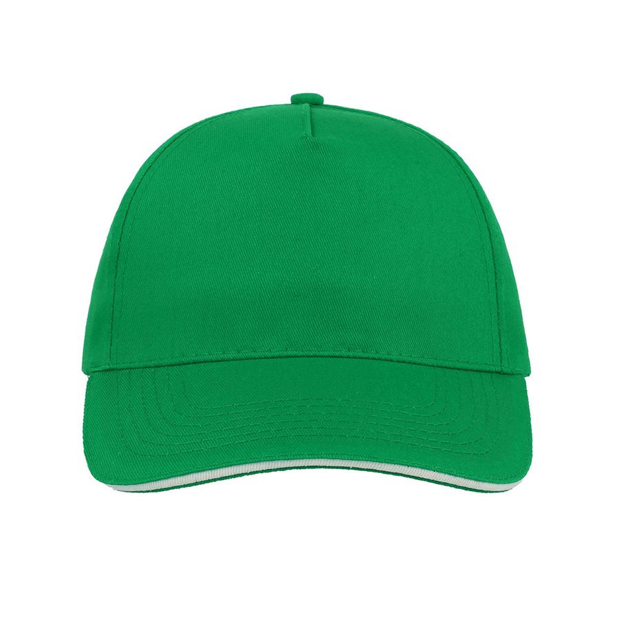 Универсальная легкая бейсболка START FIVE SANDWICH с контрастным кантом на козырьке. Бейсболка имеет универсальный размер и хорошо подойдет для любого промомероприятия. - 5 клиньев, - без лобового шва, - 4 вышитых люверса для лучшей вентиляции, - застёжка на липучке, - изогнутый козырек «сэндвич» с шестью прошитыми рядами. Цвет близкий к Pantone 2418 C58,5 см - средний размер, с помощью застёжки его можно увеличить или уменьшить до необходимого.
