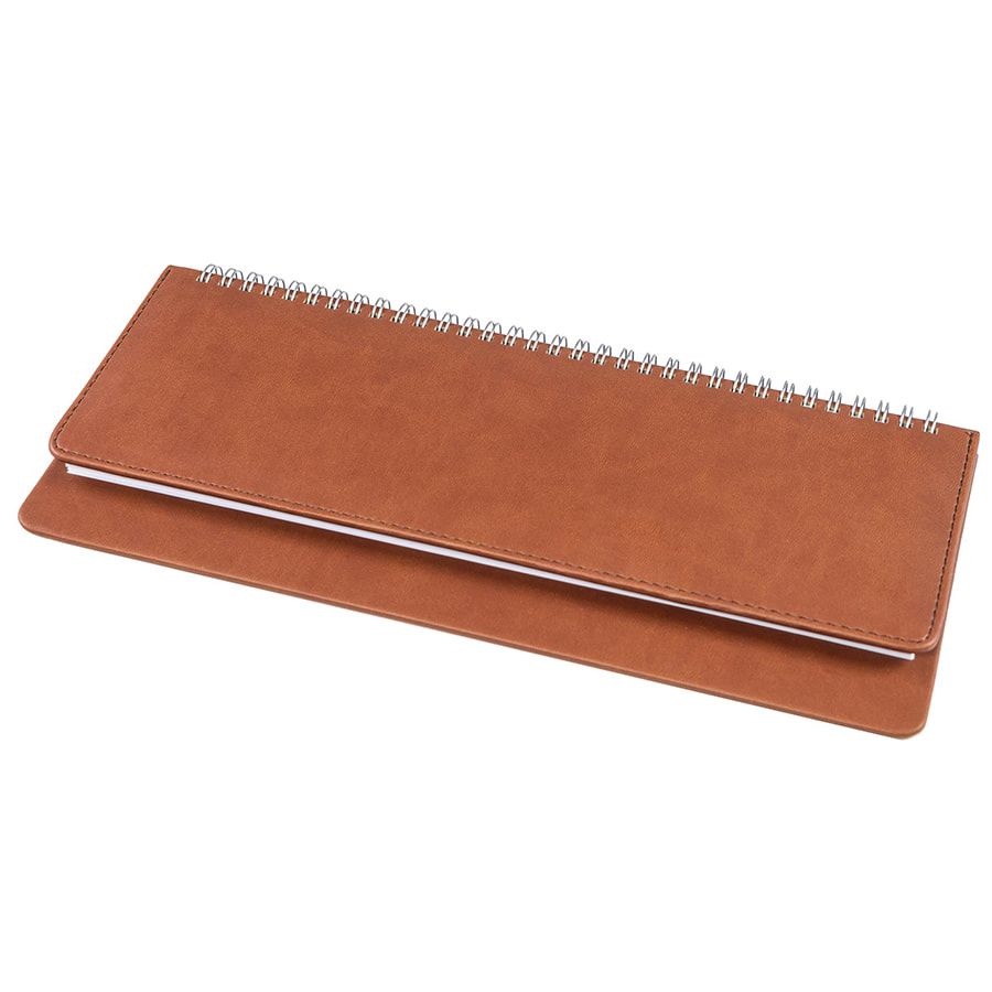 Цвет обложки, близкий к пантону 4705C Размер 140*300 мм Переплет твердый, на металлической спирали, прошивка по периметру верхней обложки Обложка PU Velvet Блок недатированный, в линейку, прямые углы Бумага белая, плотность 70 г м2 Форзац нахзац серые 128 страниц Упаковка крафтовый сливбоксВ данный момент происходит смена справочной части блока. Внешний вид изделия остается без изменений.