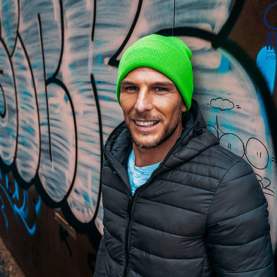 Шапка классической формы, идеально подходящая как для промоакций, так и для спортивных мероприятий. Высота шапки - около 22 см, ширина отворота - 7 см.Класс вязки - 10, риб 1х1. Цвет, близкий к Pantone 482 C