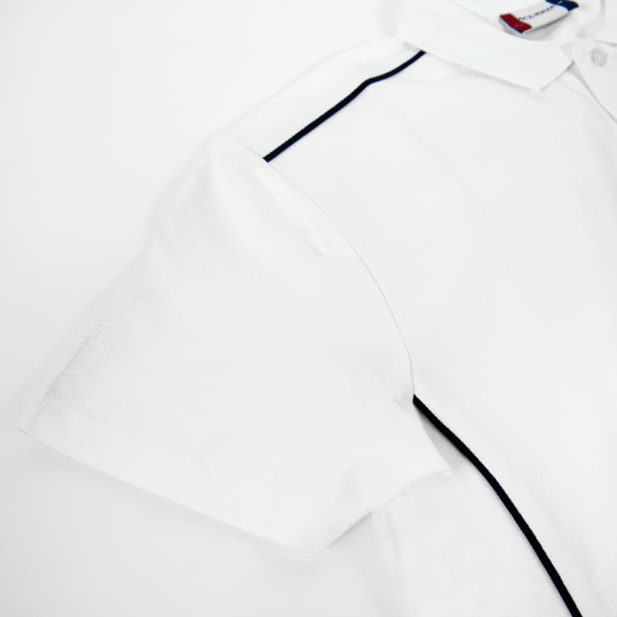 Эластичный, держащий форму воротник. Усиленная планка с перламутровыми пуговицами. Контрастный кант в швах подчеркивает приталенный силуэт.