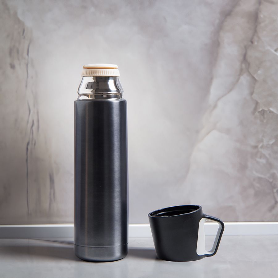 Вакуумный термос GRAPHITE с двойными стальными стенками выделяется стильной отделкой – анодированной, но при этом матовой.