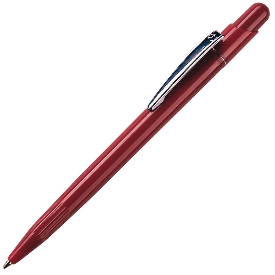 Элегантная ручка с серебристым клипом. Нажимной механизм подачи стержня. Цвет чернил синий.