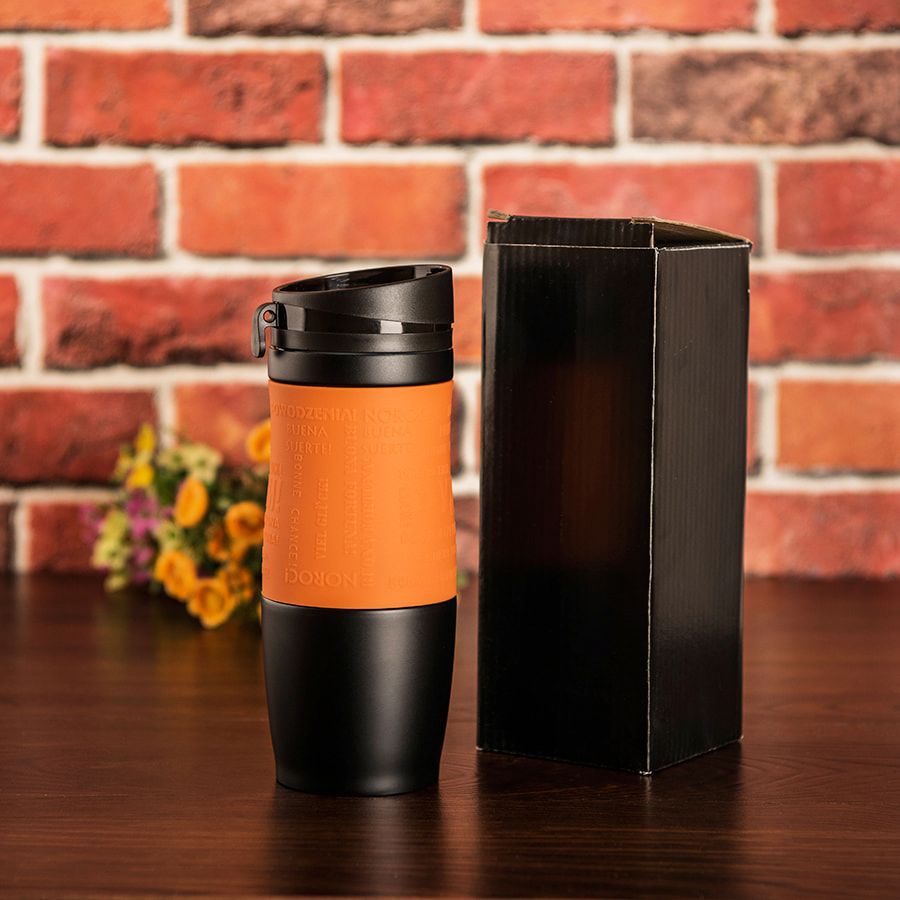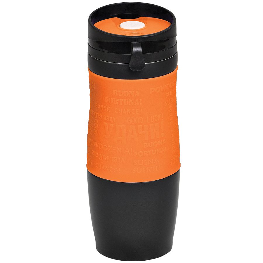 Удачи! Яркая термокружка с силиконовой манжетой. На манжете - пожелание"Удачи!" на разных языках. Pantone 165C. Термокружки сделаны из 304 нержавеющей стали. Вы сможете сохранять ваши напитки горячими до 6 часов и холодными до 12 часов. Подходит для любых напитков. Можно использовать как для горячих, так и холодных. Как для безалкогольных, так и алкогольных. Благодаря уникальному покрытию и форме, кружка не выскальзывает из рук. Стильный дизайн и яркие сочные цвета. Это не просто обычная кружка, но еще и модный аксессуар