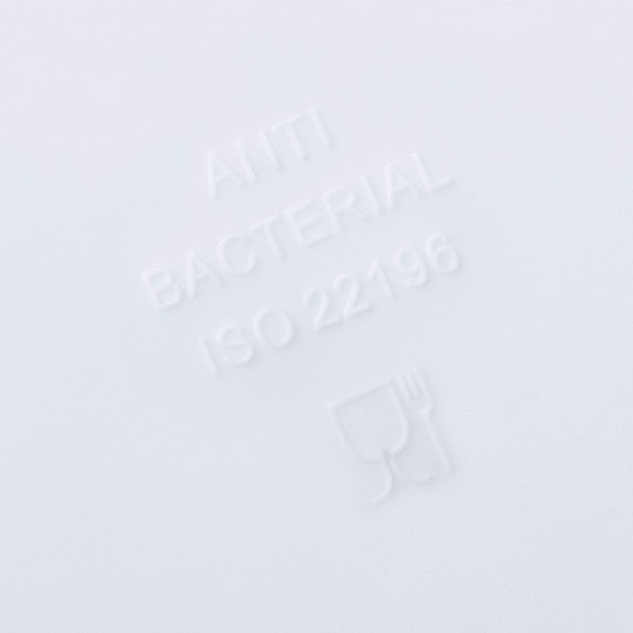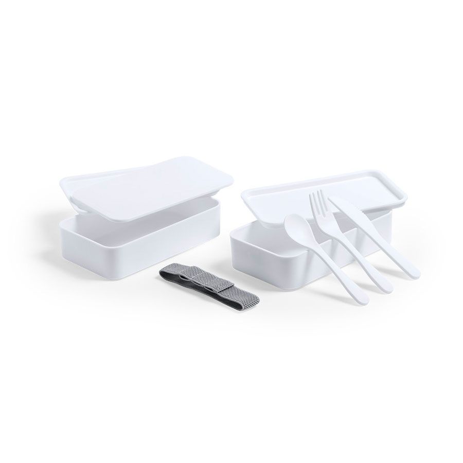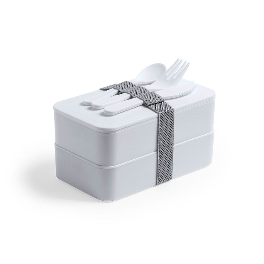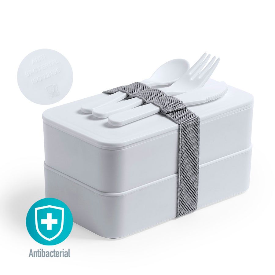Ланч-бокс с двумя контейнерами, крышками и столовыми приборами: ложка, вилка, нож. Они крепятся на специальной резинке на корпусе изделия. Ланч-бокс изготовлен из особого антибактериального пластика (BPA free) и упакован в специальный пакет. Антибактериальный пластик снижает уровень бактерий, присутствующих на поверхностях, благодаря добавлению постоянных статических микробных агентов, с высокой эффективностью предотвращающих бактериальное загрязнение. Изделие соответствует стандарту ISO 22196, который определяет антибактериальную активность в пластичных материалах и непористых поверхностях. Ланч-бокс подходит для использования в микроволновой печи, посудомоечной машине и холодильнике.Индивидуальная упаковка - пп пакет