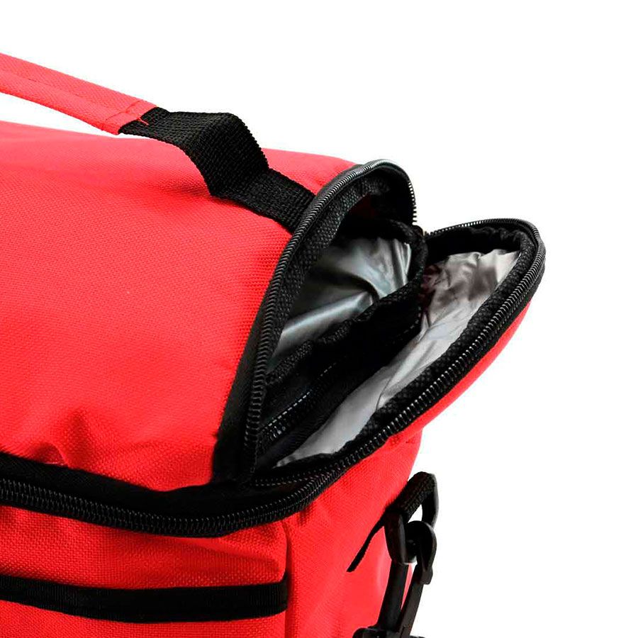Универсальная сумка-холодильник из прочного полиэстера 600D с двумя независимыми отделениями на молнии. С 2 передними карманами, один из которых застегивается на липучку, а сзади - карман из эластичной сетки. Внутри изотермическое алюминиевое покрытием. Регулируемый плечевой ремень с мягкой подкладкой, с застежкой-карабином. Материал: полиэстер 600D PEVA