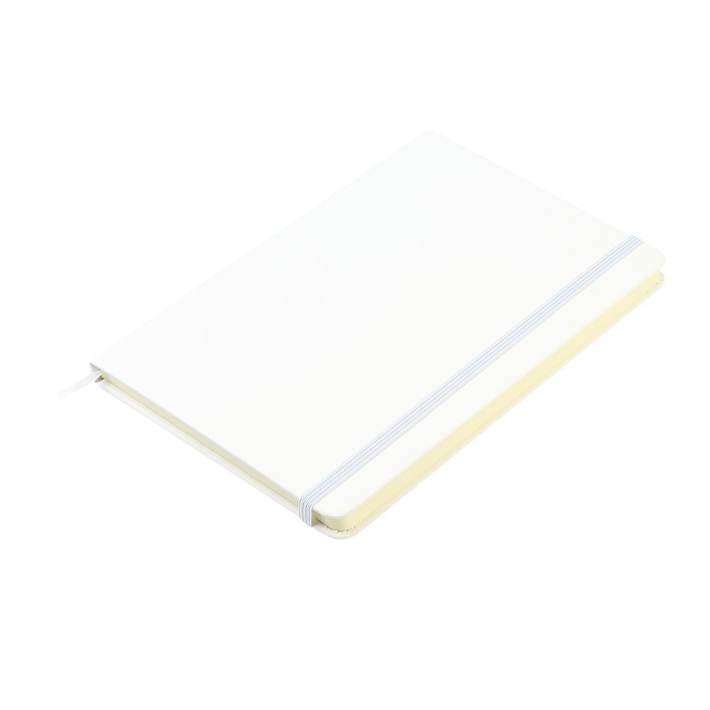 Блокнот формата А5 с твердым покрытием из PU-материала с имитацией рисунка кожи, с эластичной застежкой для закрытия и текстильной закладкой в цвет блокнота, 192 страницы / 96 листов, плотность 70г/м, страницы с черными линиями.