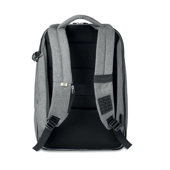 Рюкзак из полиэстера 600D со встроенным зарядным устройством от солнечной батареи с USB-портом и кабелем. Время зарядки составляет около 5-6 часов при прямом солнце. 2 основных отделения. Несколько внутренних карманов. Включает в себя один внутренний отсек для ноутбуков на 13 дюймов. Мягкие спинки и плечевые ремни. Дополнительный карман для планшета.